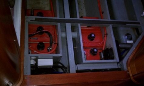 Liquid electrolyte Roll batteries each weighs 350lbs. To get them out of the boat they covers were take off and each cell unbolted divided into three.